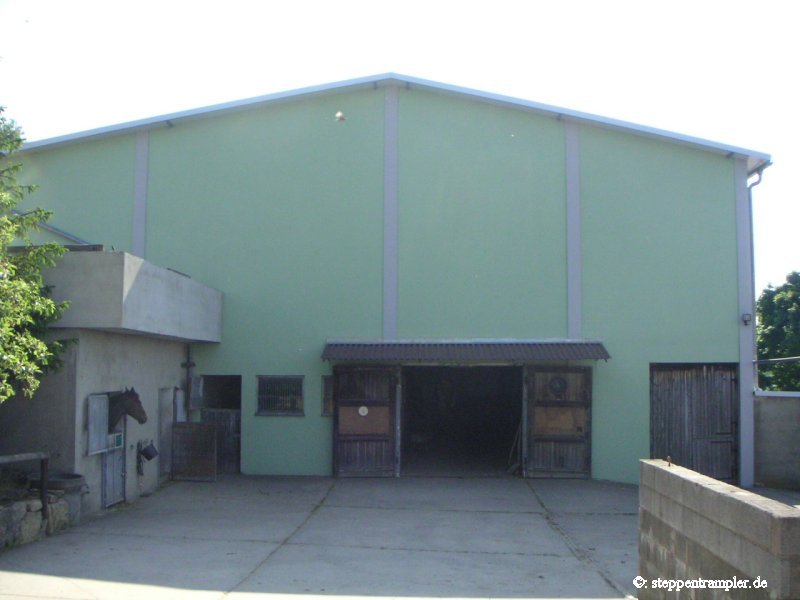 Auf fast drei Seiten, direkt am Stall angrenzend befinden sich die großzügigen Koppeln, die vorderste ist mit einer Überdachung versehen, alle mit Elektrozaun umzäumt, und ebenso alle ausgerüstet mit Tränkern für die Pferde. Die Tiere befinden sich von Mitte/Ende September bis Mitte Mai tagsüber auf den Koppeln, nachts im Stall, und werden früh und abends mit Hafer und Heu gefüttert, im Sommer stehen die Pferde ganztägig auf der Weide. Die Bilder vermitteln einen kleinen Eindruck der gasamten Weidefläche. |
