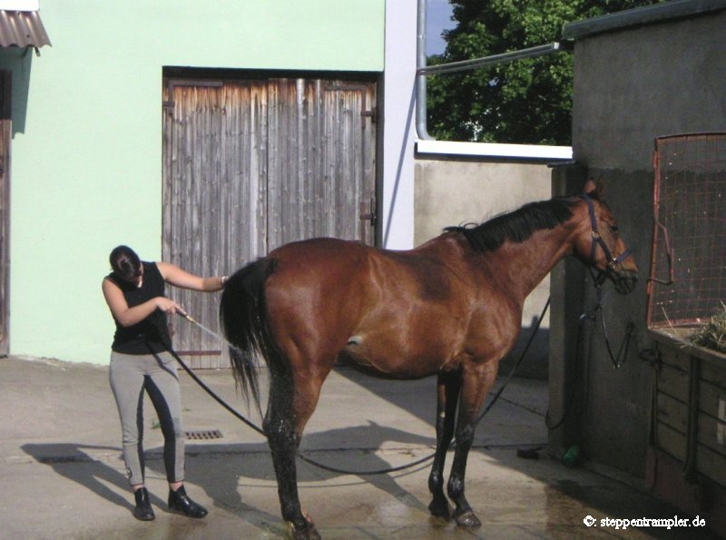 Vor dem Eingang zum Stall, der große Wasch-, Sattel- und Arbeitsplatz, der von jedem benutzt werden kann, und der von den Benutzern selbst gereinigt wird. Einige Bilder, um sich selbst einen Eindruck zu verschaffen |